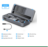 Комплект: футляр; паяльник Fnirsi HS02A; подставка; припойная проволока 42 г; очиститель; кабель-переходник; 6 наконечников, без E plug.